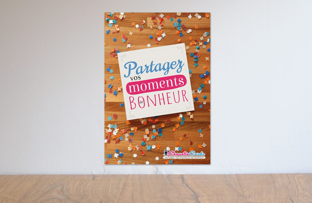 Conception de la communication imprimée du site de carterie en ligne Chouette Cards.